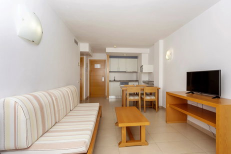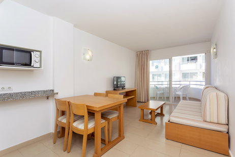 one bedroom apartments with capacity from 2 to 3 people, equipped with kitchennette, bathroom, air conditioning, Free Wi-Fi, balcony and sea views