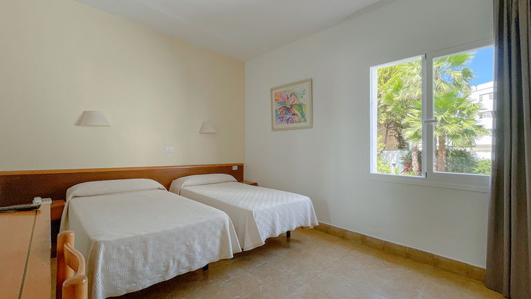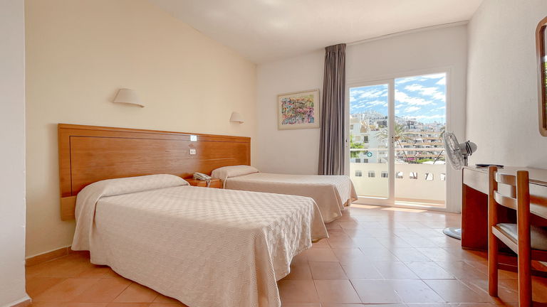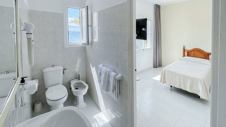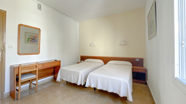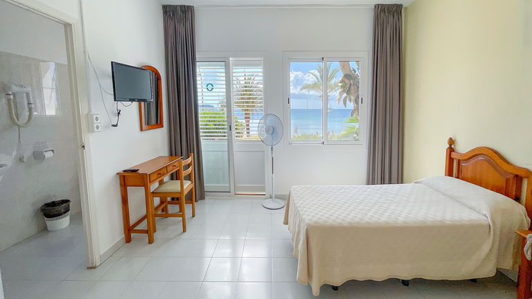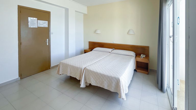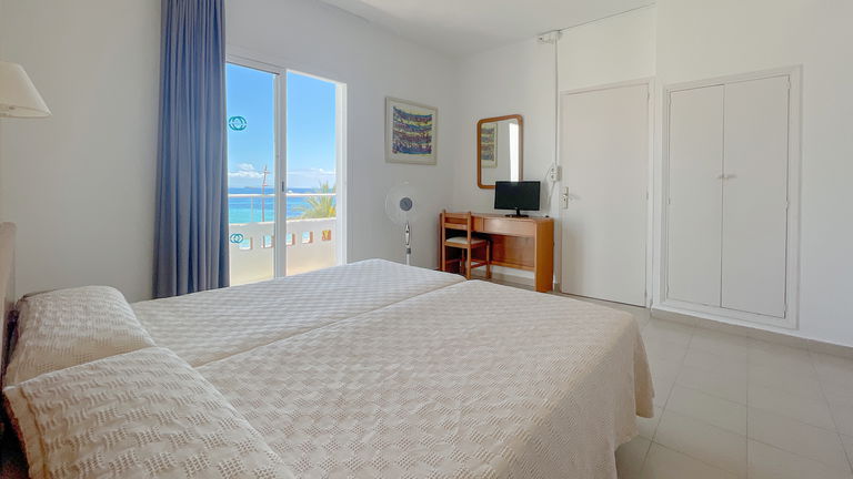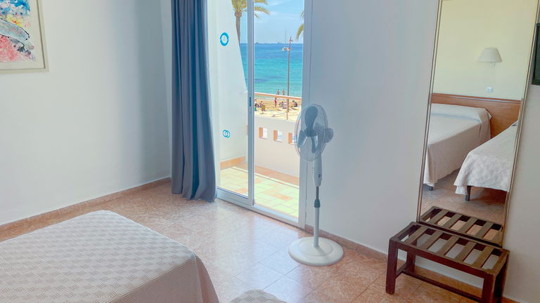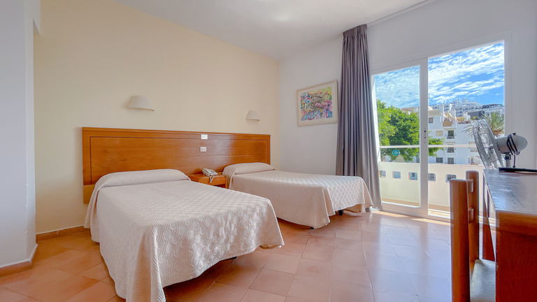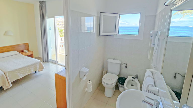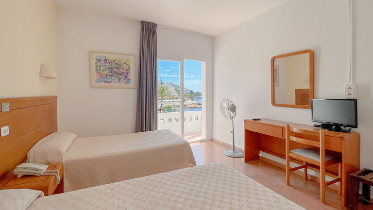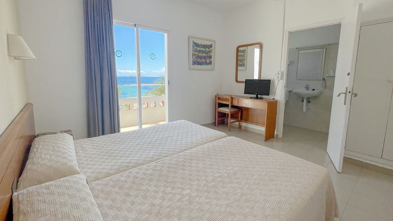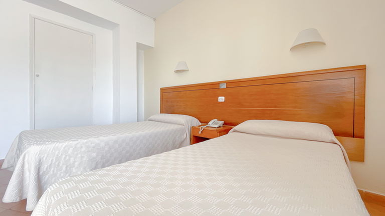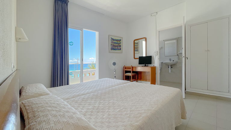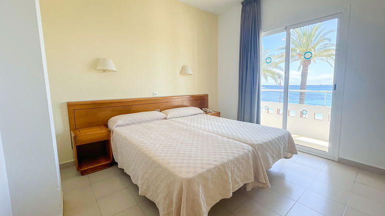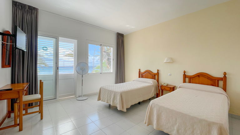 Habitación doble con dos camas individuales. Dispone de baño privado y balcón o terraza con bonitas vistas al mar.