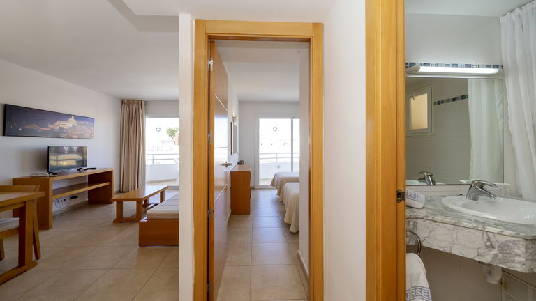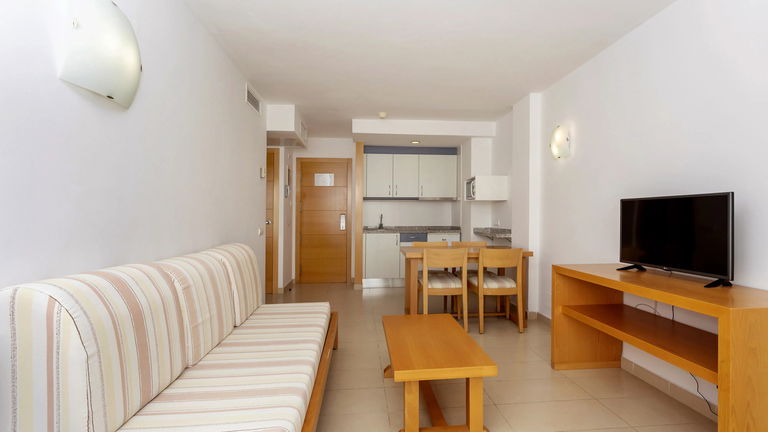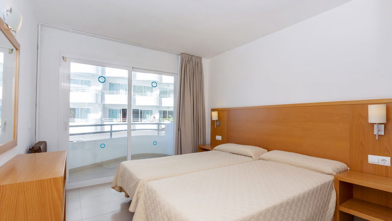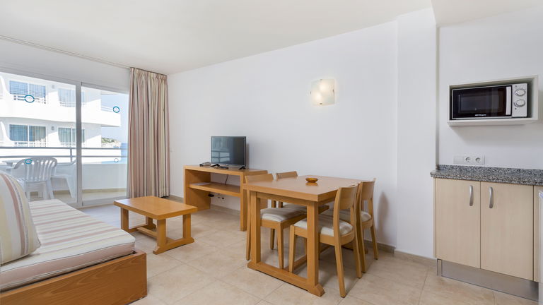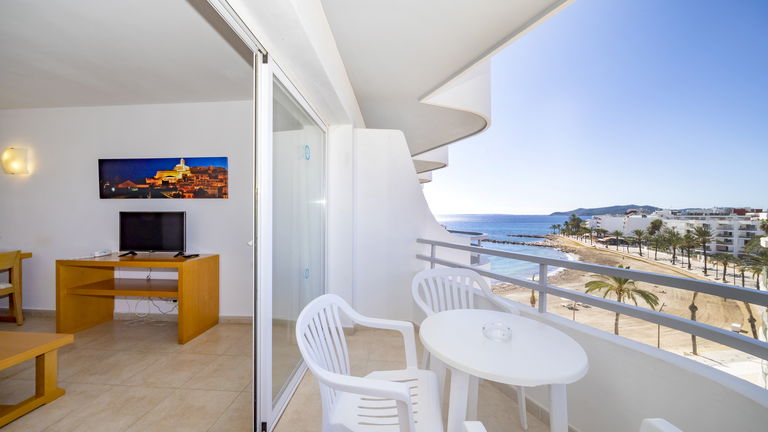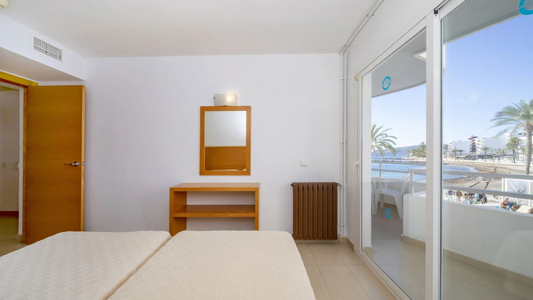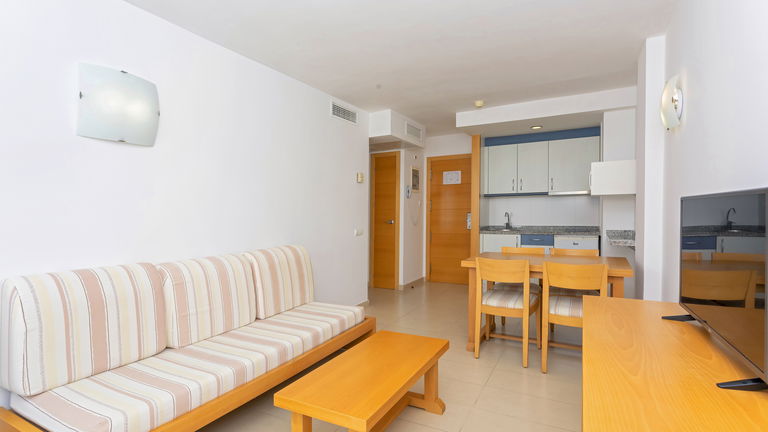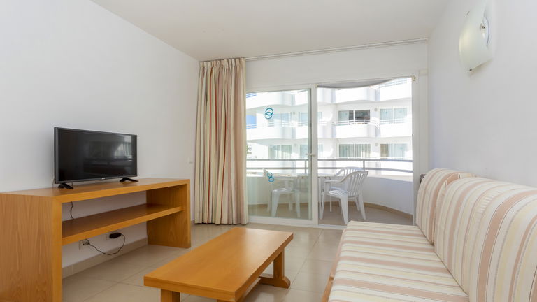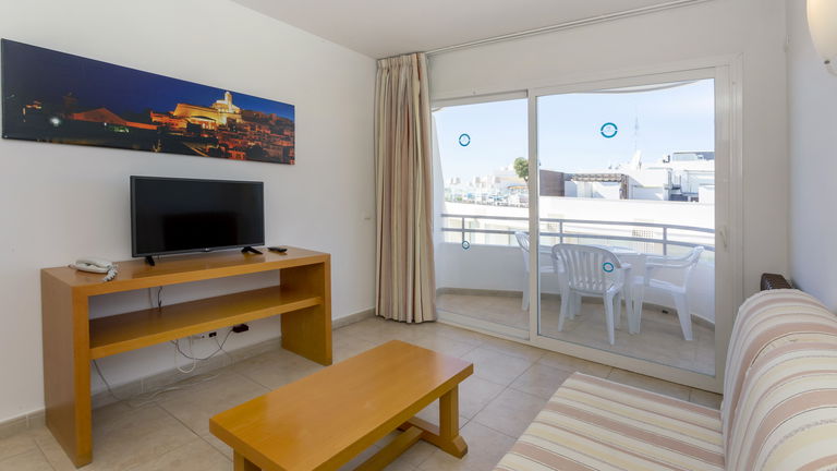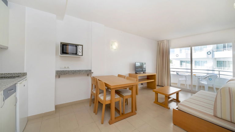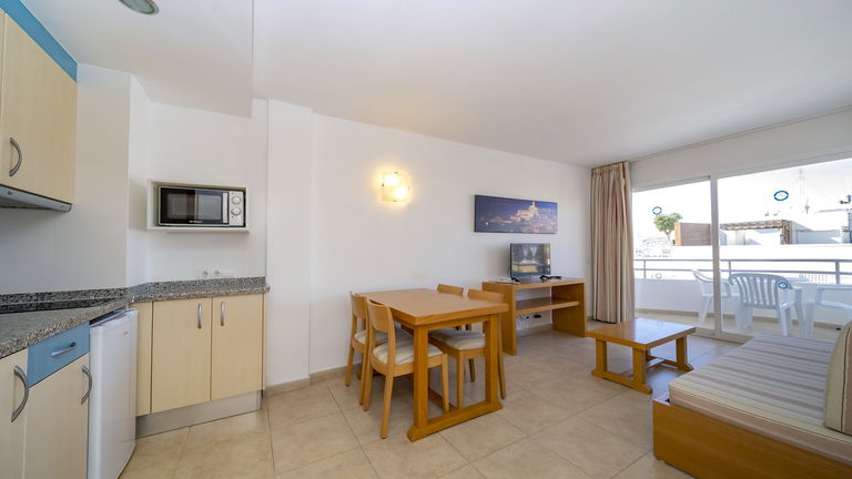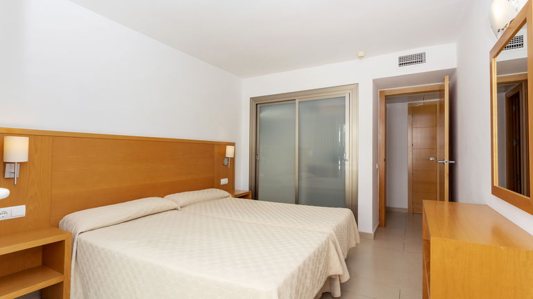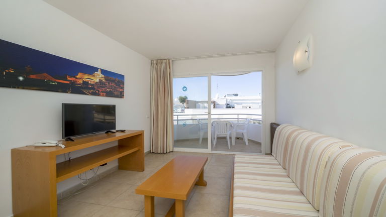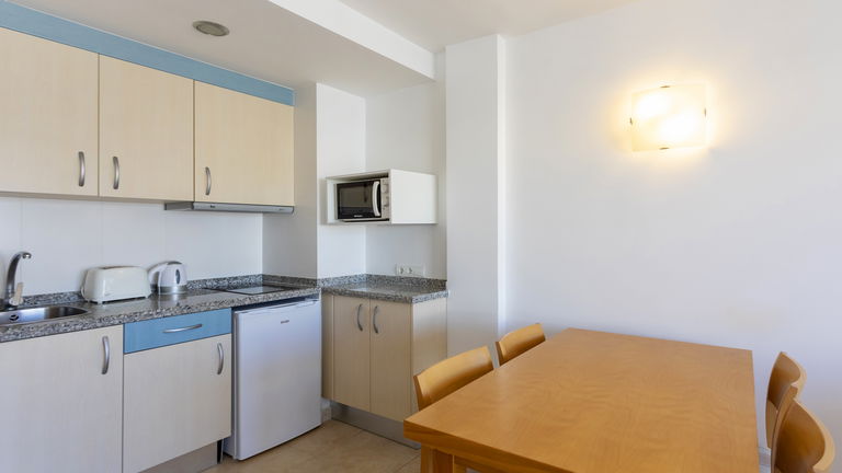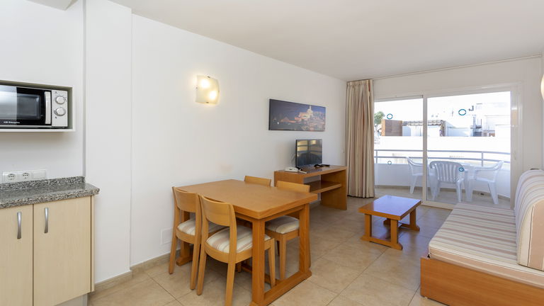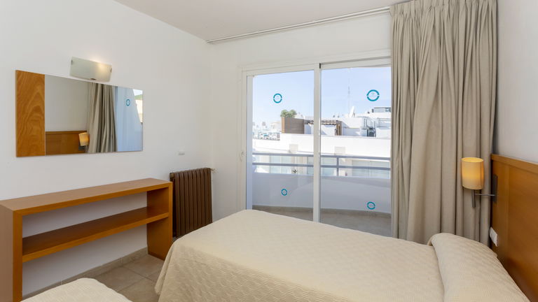Comfortabele appartementen met twee slaapkamers met een capaciteit van 2 tot 5 personen uitgerust met een keuken, badkamer, woon-eetkamer, airconditioning, Gratis Wi-Fi-verbinding en een balkon met zijdelings uitzicht op de zee.