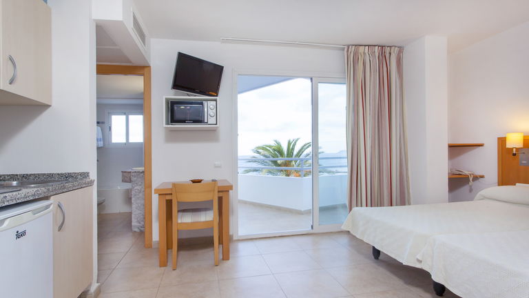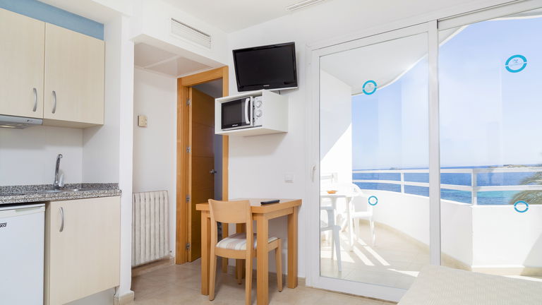 Mooie studio's met een capaciteit van 1 tot 2 personen. Uitgerust met keuken, badkamer, airconditioning,Gratis Wi-Fi-verbinding en balkon met uitzicht op zee.